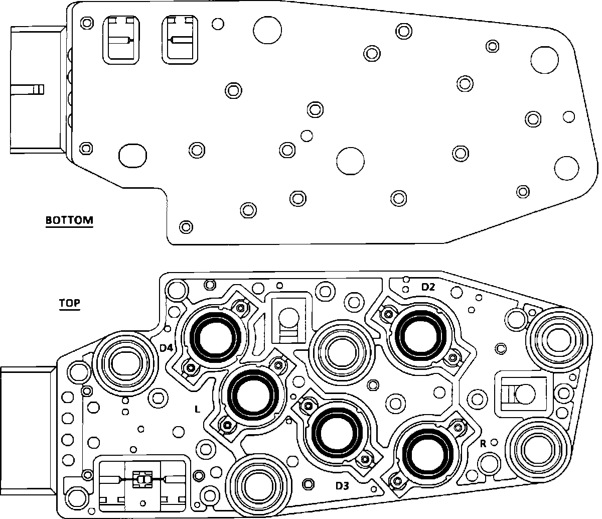 The Transmission Range (TR) Pressure Switch assembly is attached to the valve body inside the transmission.