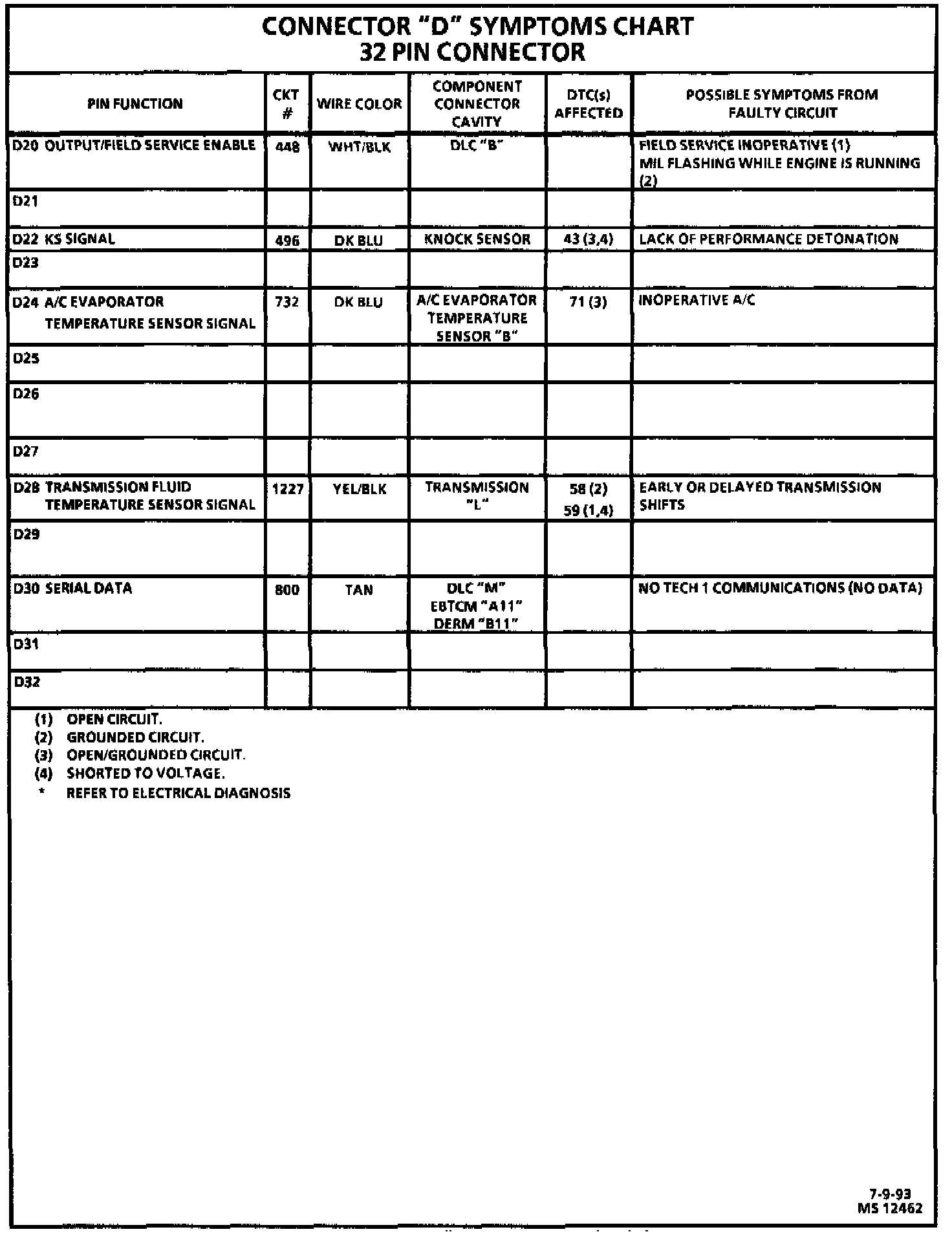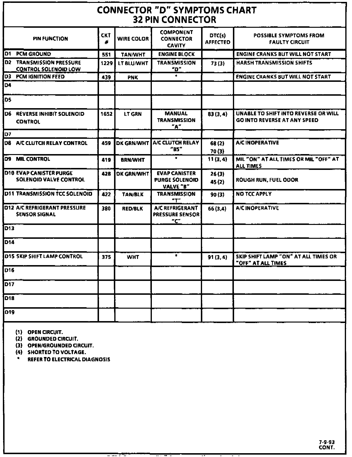 PCM Symptom Chart: