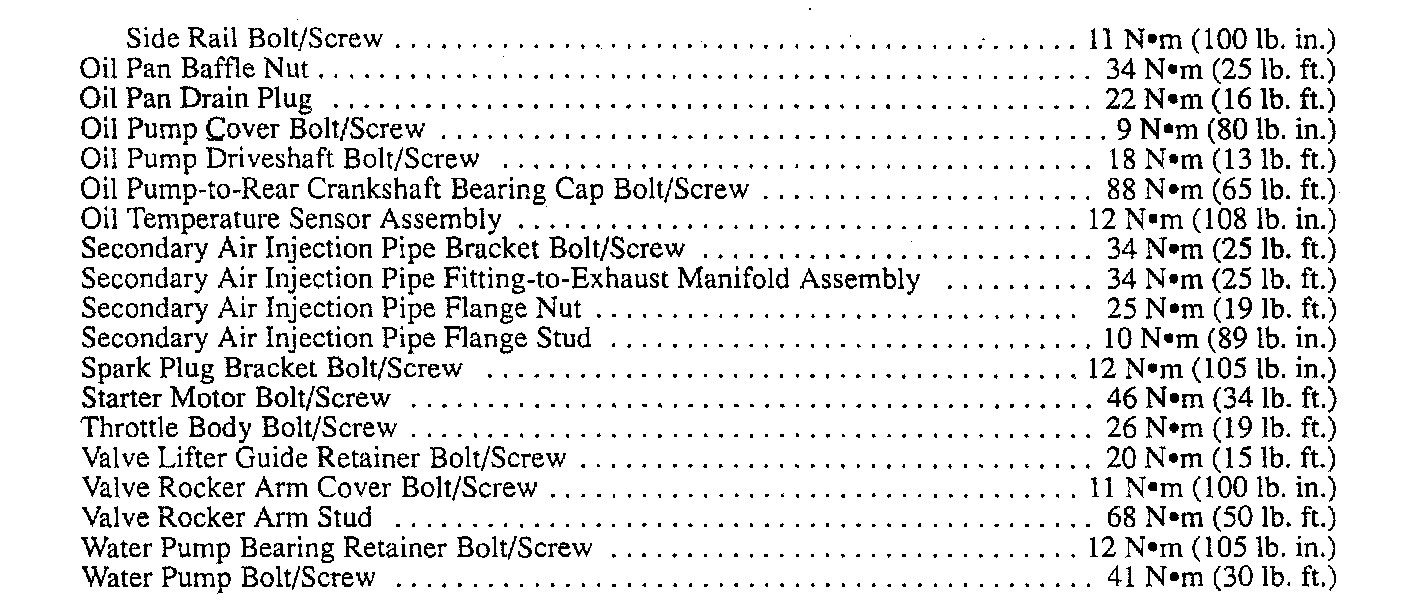 Fastener Tightening Specifications - Engine