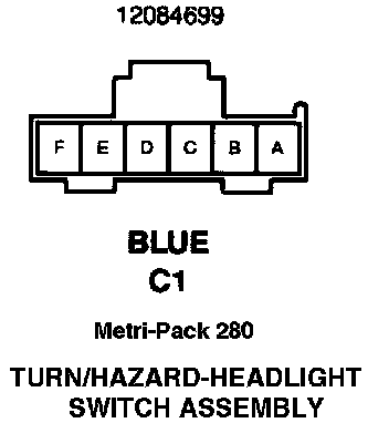 Harness Connector Faces: Turn/Hazard-Headlight Switch Assembly- C1: