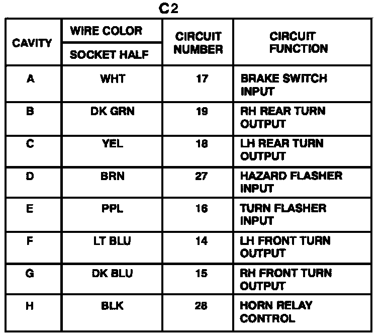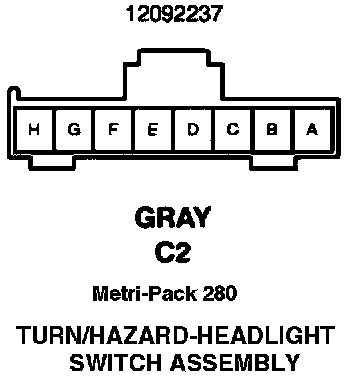 Harness Connector Faces: Turn/Hazard-Headlight Switch Assembly- C2 (Description):