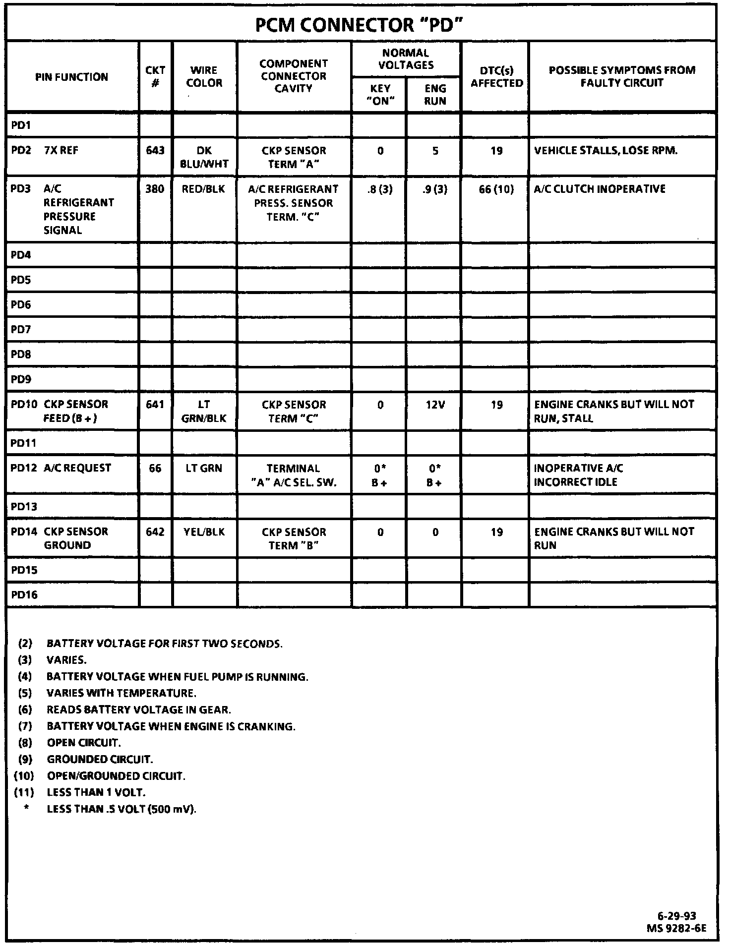 PCM Connector "PD" Symptom Chart: