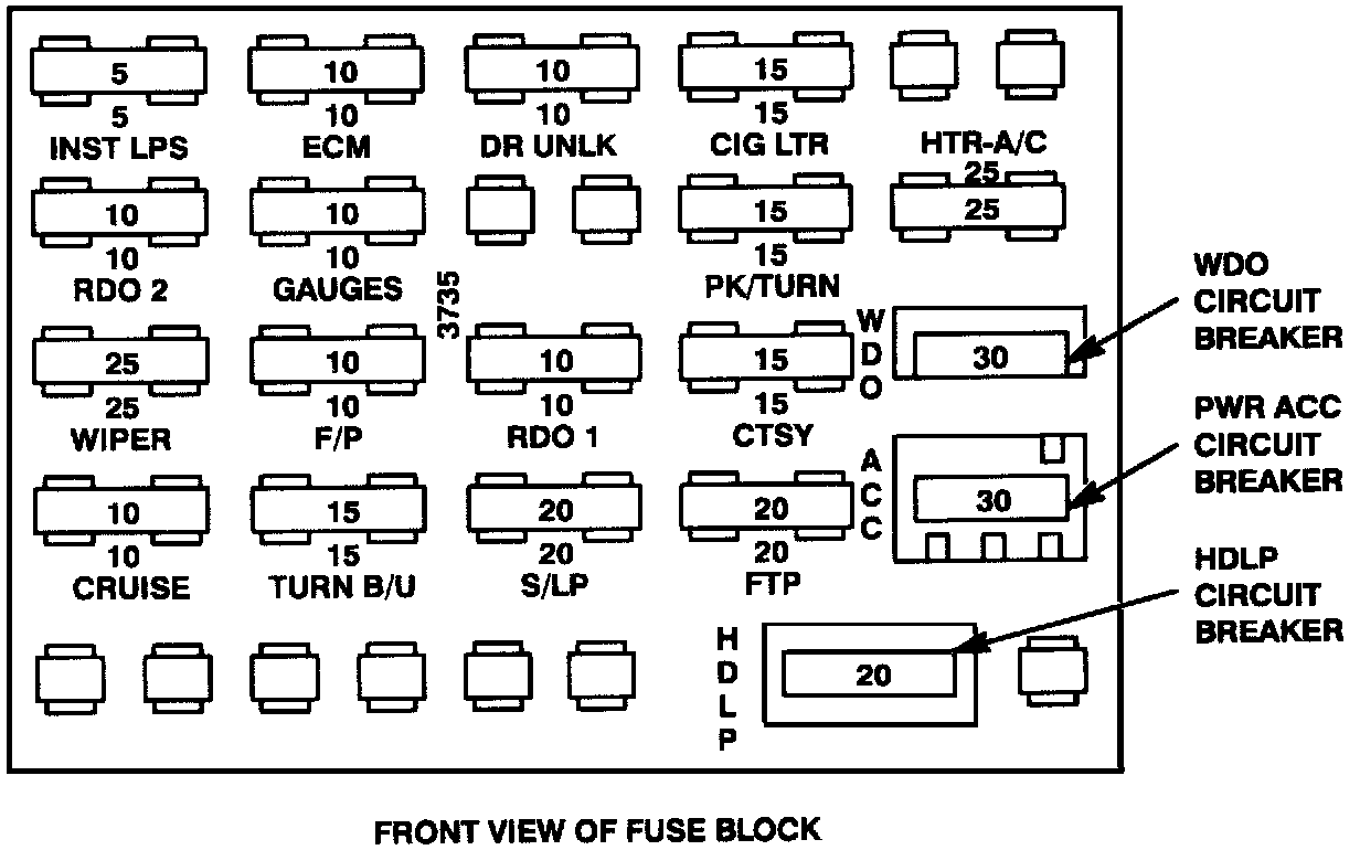 Fuse Block Details: Front View Of Fuse Block: