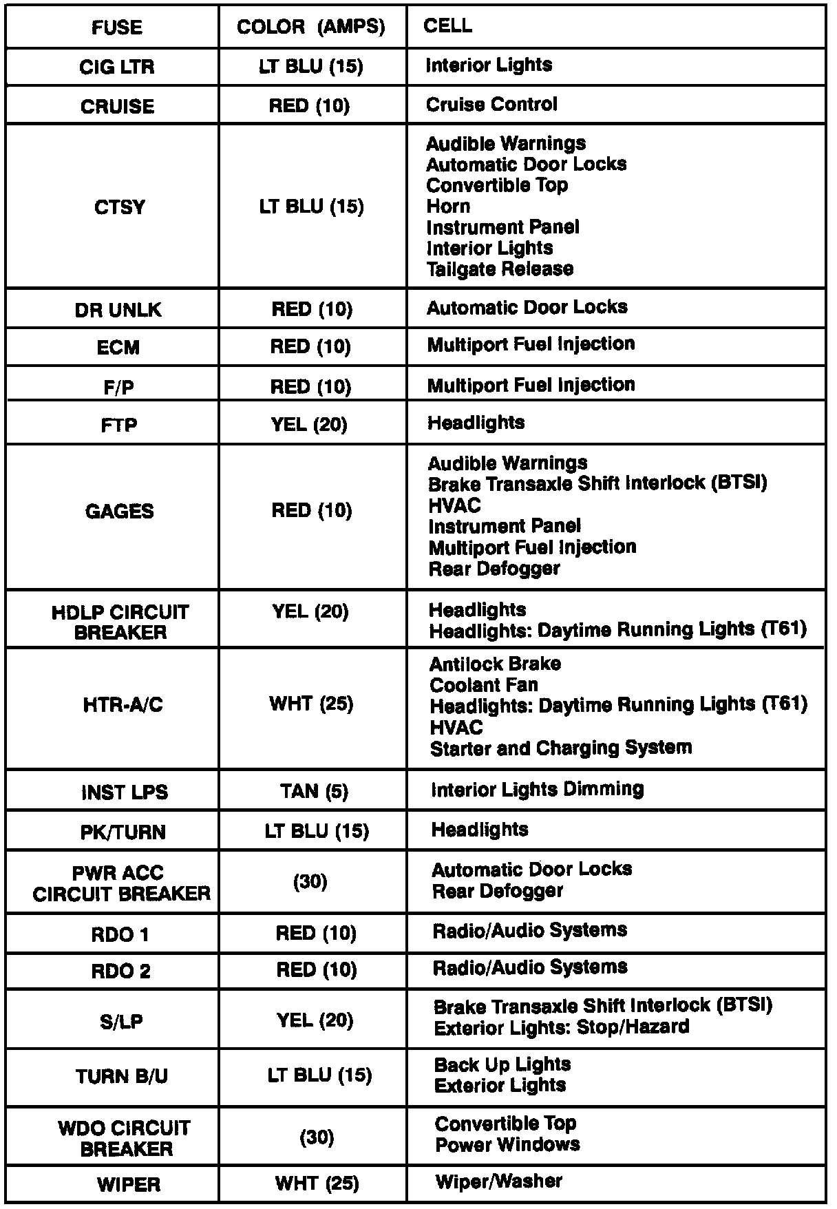 Fuse Block Details: Description: