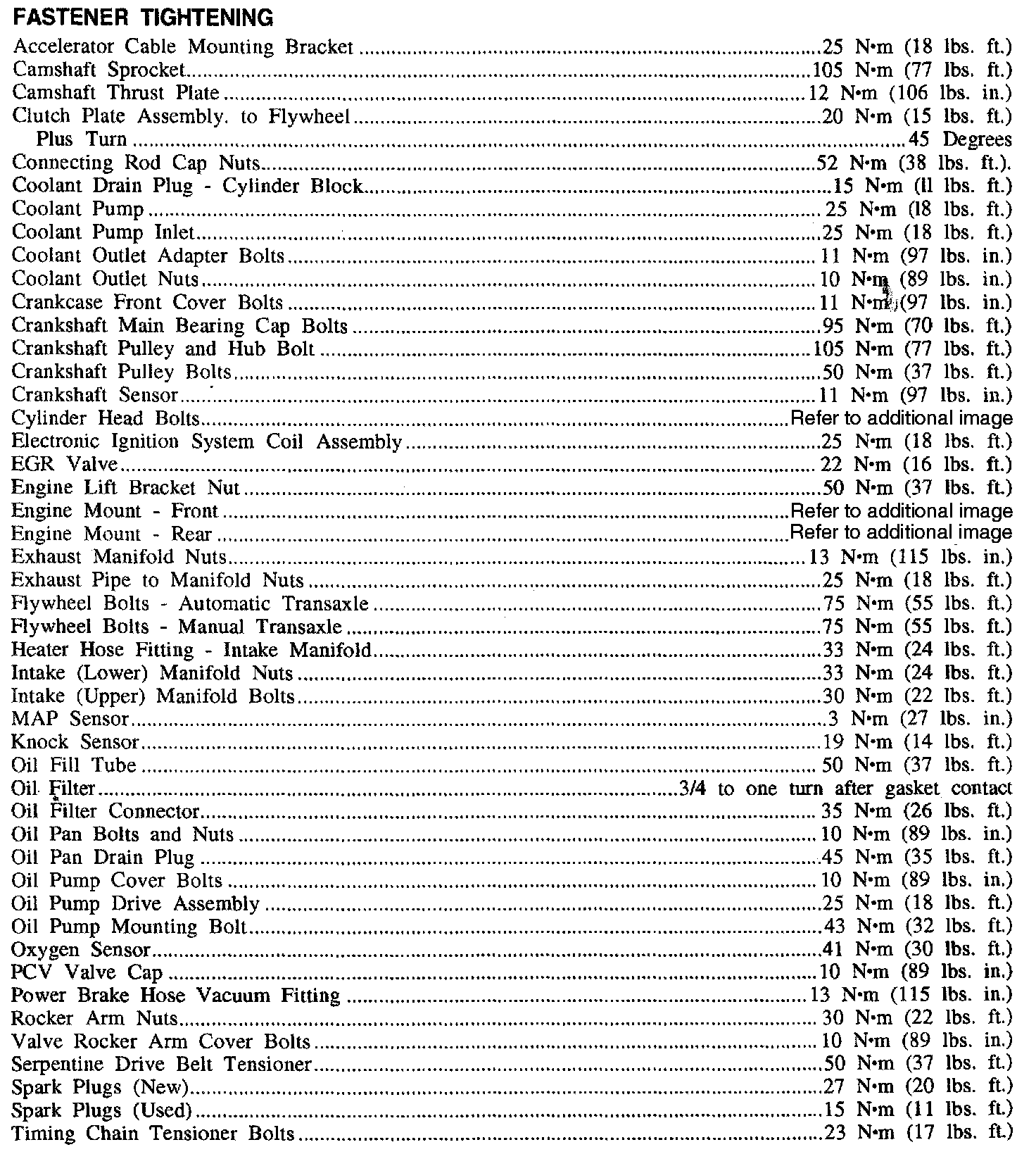 Fastener Tightening Specifications - Engine