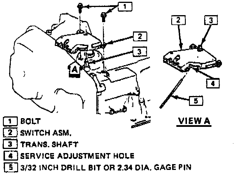 c. If bolt holes do not align with mounting boss on transaxle, verify shift shaft is in Neutral position, do not rotate switch. Switch is pinned in Neutral position. If switch has been rotated and the pin broken, use procedure outlined in step 4.
