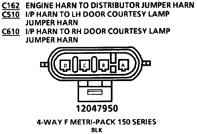 C162: ENG Harn To Distributor Jumper Harn, C510: I/P Harn To LH & RH Door Courtesy Lamp Jumper Harn And C610: