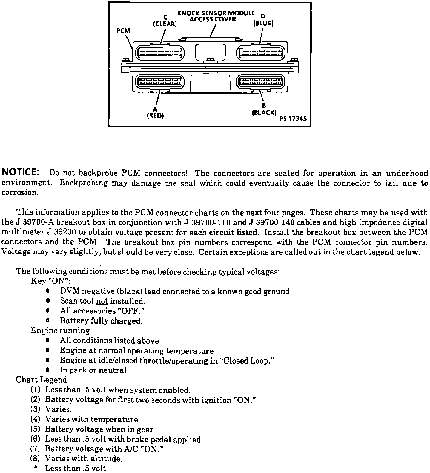 PCM Connector ID And Pin/Voltage Chart Legend:
