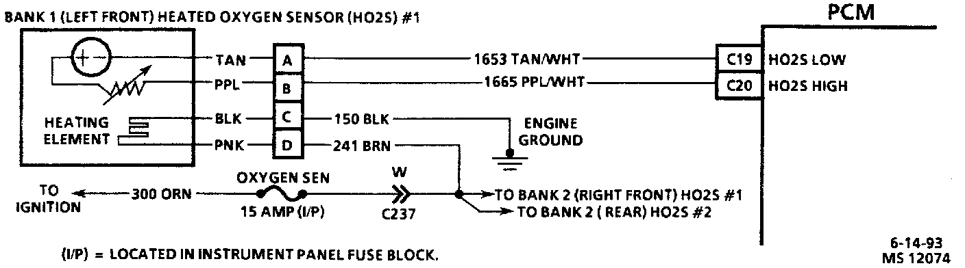 Bank 1 (Left) Oxygen Sensor Circuit Diagram: