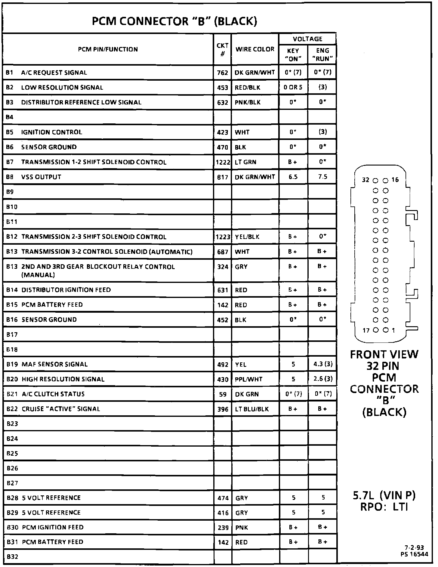 PCM Connector ID And Pin/Voltage Reference Chart (2 Of 4):