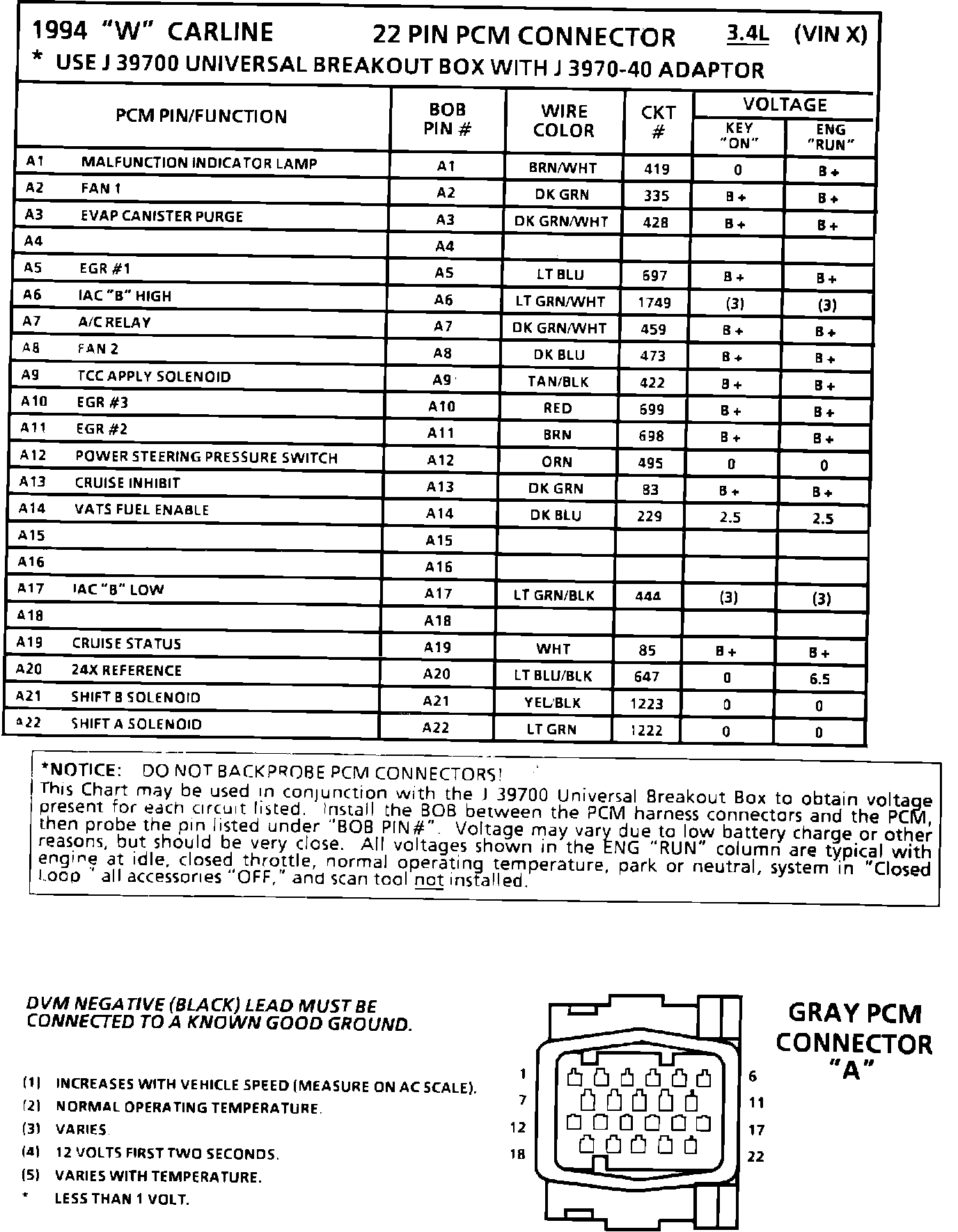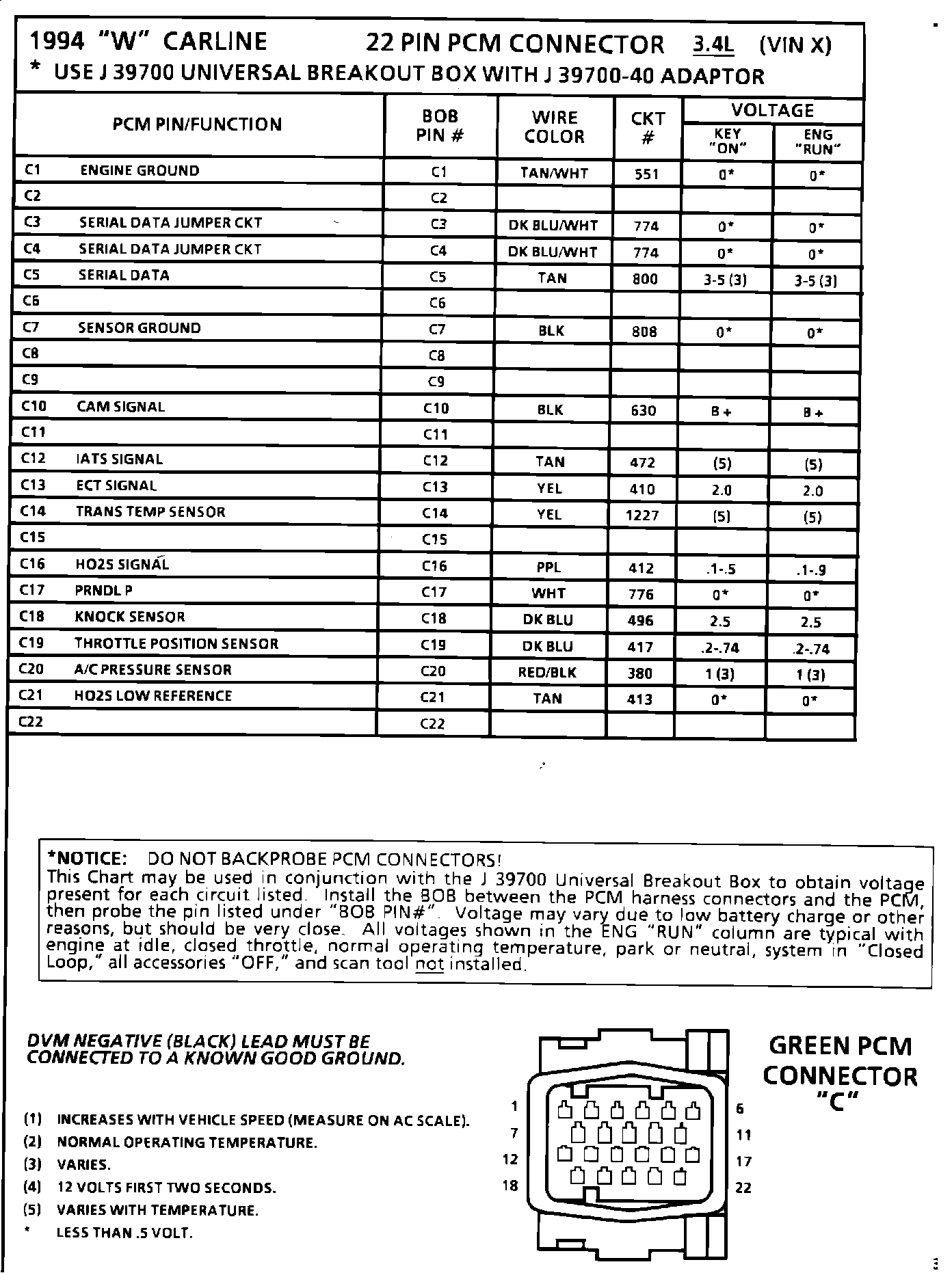 PCM Connector ID And Terminal/Voltage Reference Chart (1 Of 4):