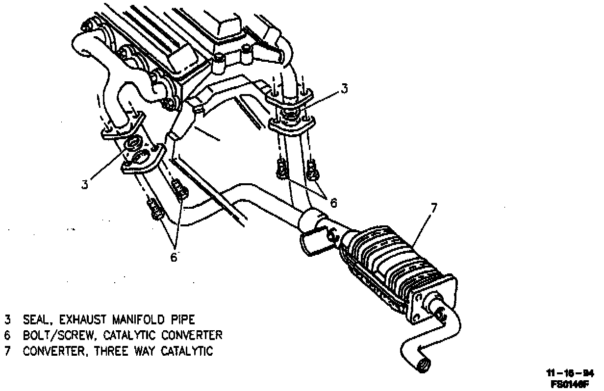 4. 3-way catalytic converter bolts/screws (6) at exhaust manifolds.