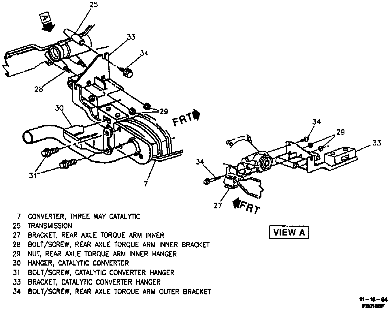 1. 3-way catalytic converter (7) to catalytic converter hanger (30).