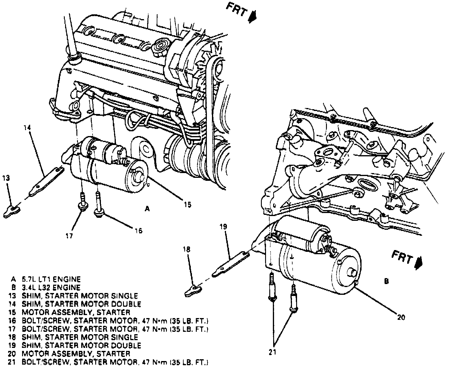 2. Install starter motor assembly and torque mounting bolts to 40 ft. lbs.