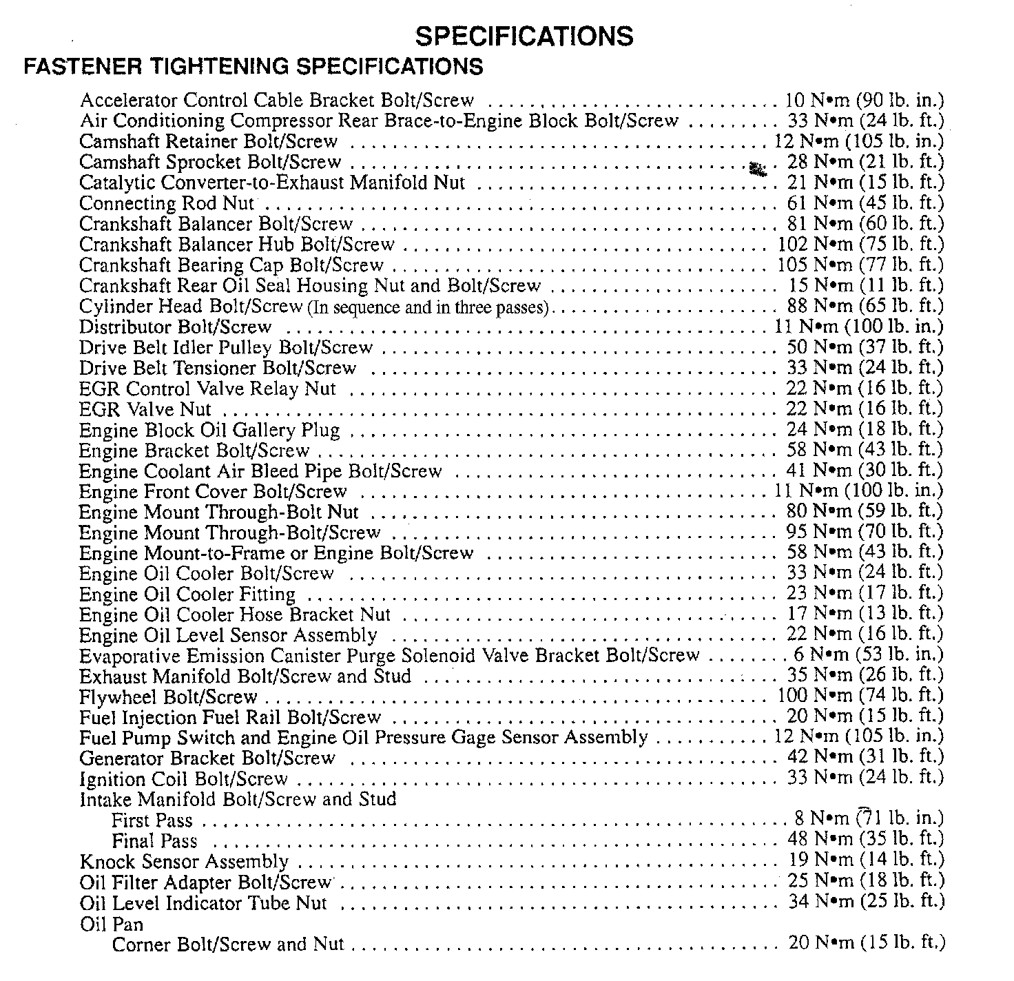 Fastener Tightening Specifications - Engine