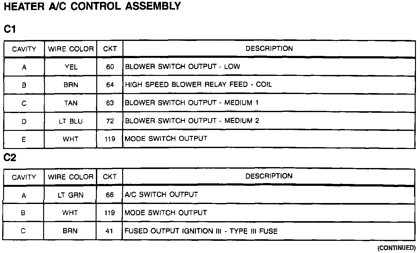 Heater A/C Control Assembly C1, C2 And C3 (Part 2 Of 2):