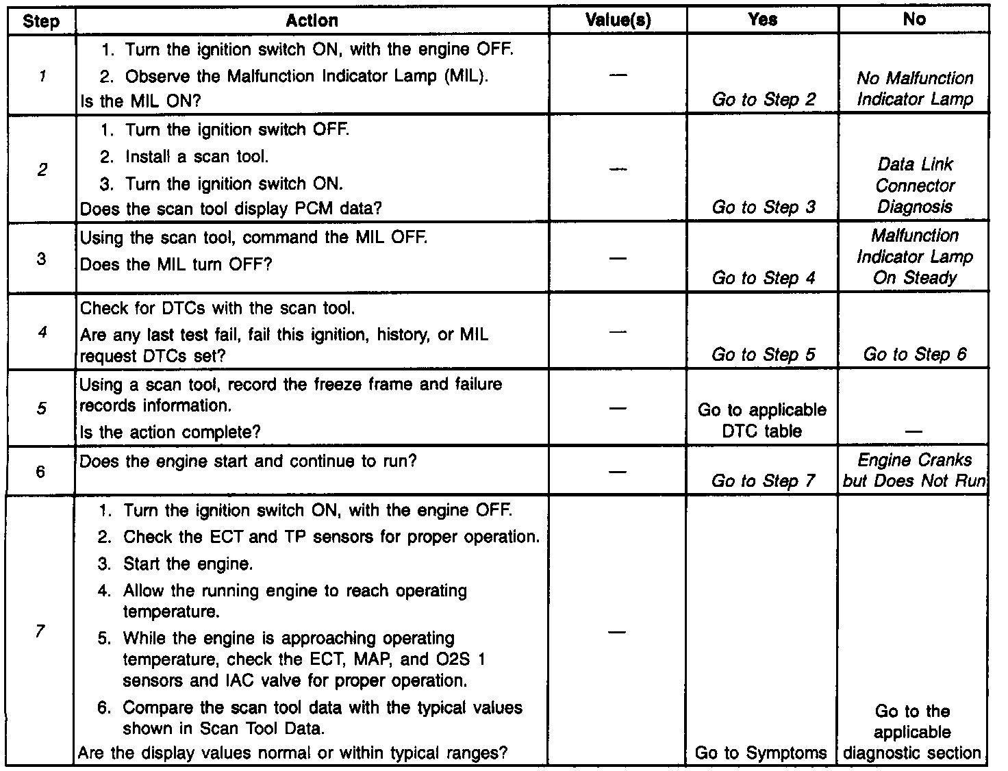 The Powertrain OBD System Check is an organized approach to identifying a problem created by an electronic engine control system malfunction. The Powertrain OBD system check is the starting point for any driveability complaint diagnosis. This directs the service technician to the next logical step in diagnosing the complaint. Do not perform this check if no driveability complaint exists. Understanding the table and using it correctly will reduce diagnostic time, and prevent the replacement of good parts.
