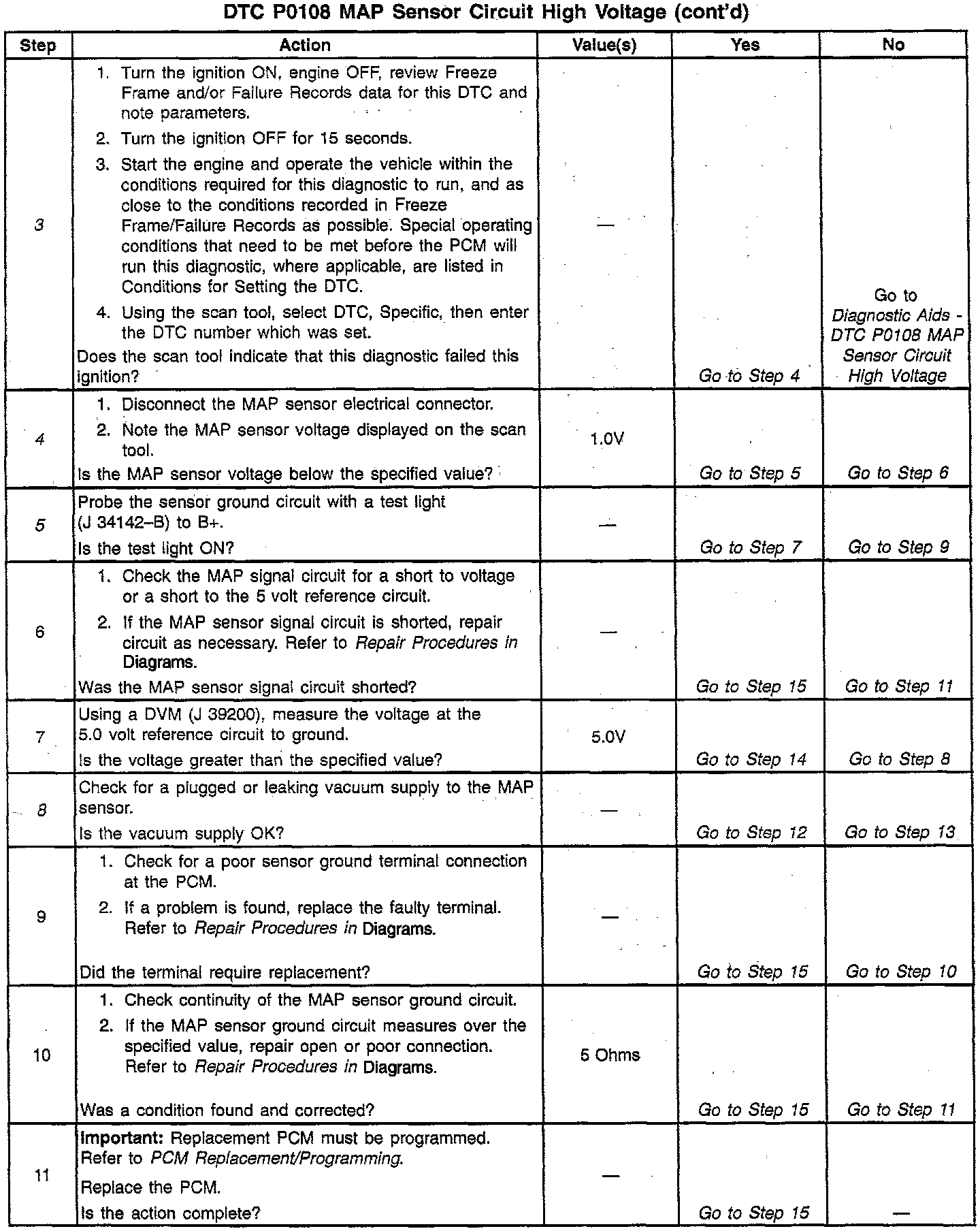 8. Remove the MAP sensor and check if vacuum is available to the sensor. Also inspect MAP sensor seal for nicks and cuts. A vacuum leak at the seal will cause P0108 to set.