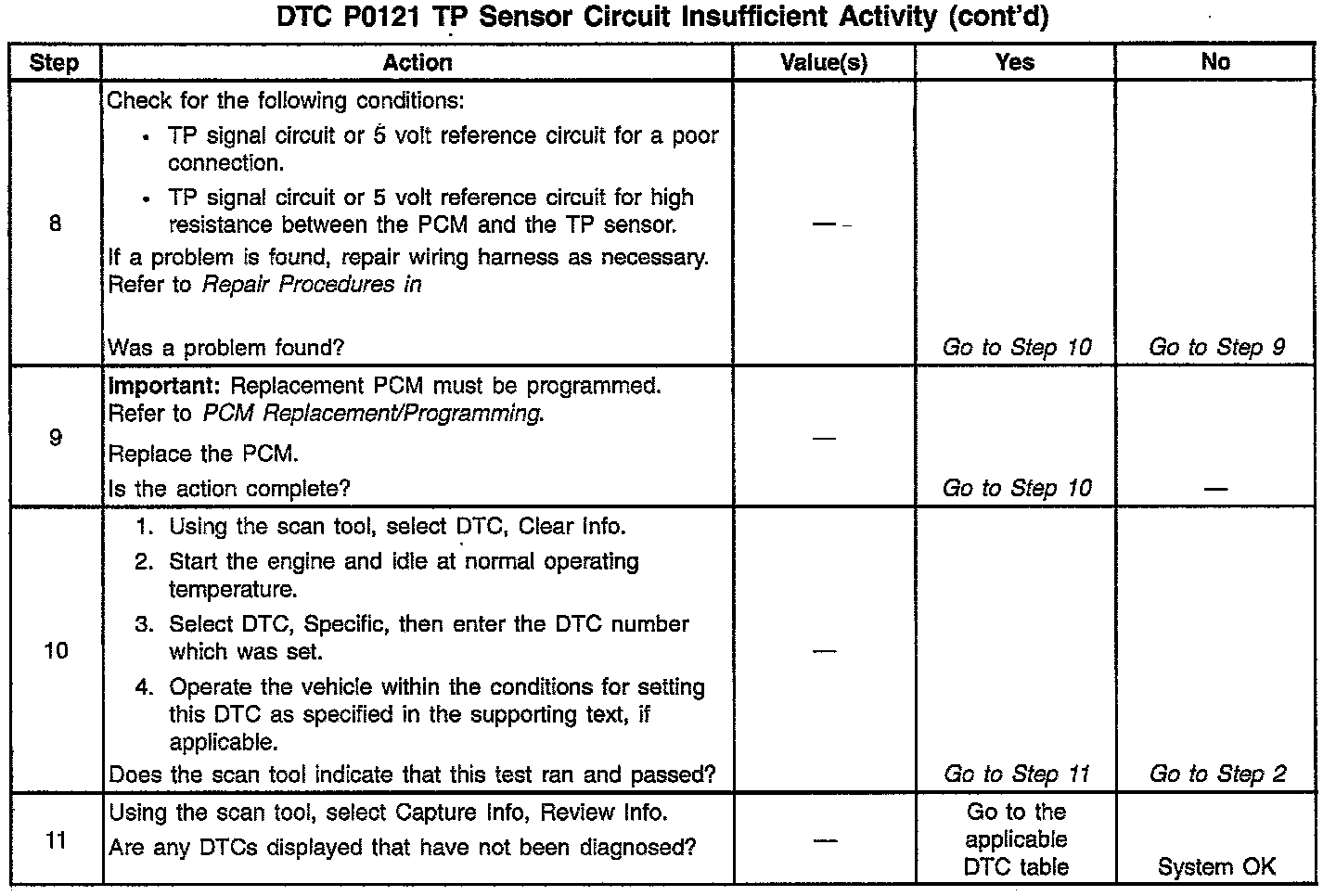 - If it is determined that the DTC occurs intermittently, performing the DTC P1121 diagnostic table may isolate the cause of the fault.