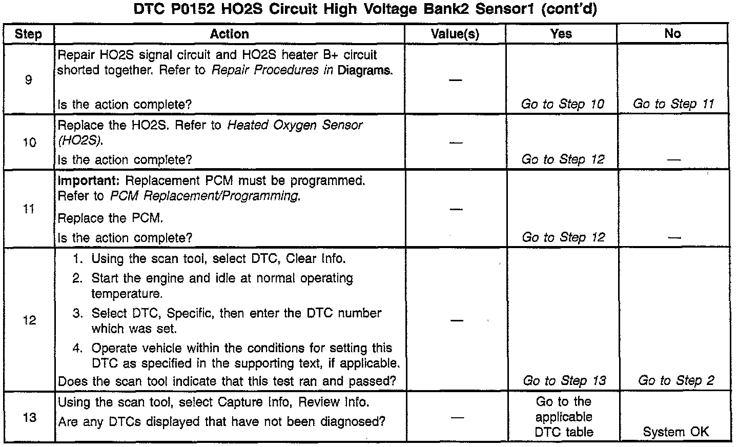 Number(s) below refer to step numbers on the diagnostic table.