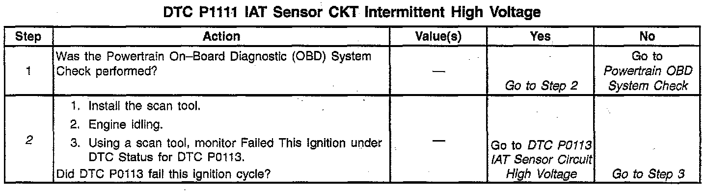 2. If DTC P0113 failed this ignition, indicates a hard failure is present. When a hard failure is present, both the hard and intermittent DTCs will set.