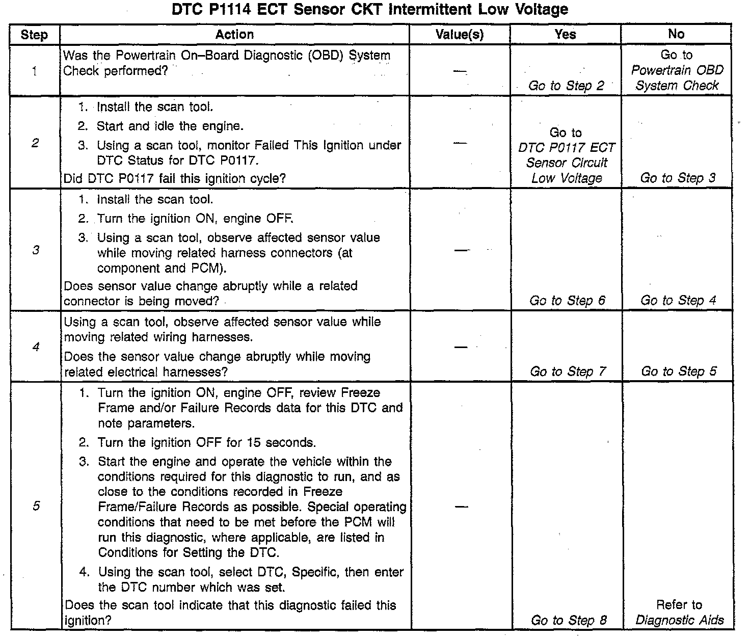 2. If DTC P0117 failed this ignition, indicates a hard failure is present. When a hard failure is present, both the hard and intermittent DTCs will set.
