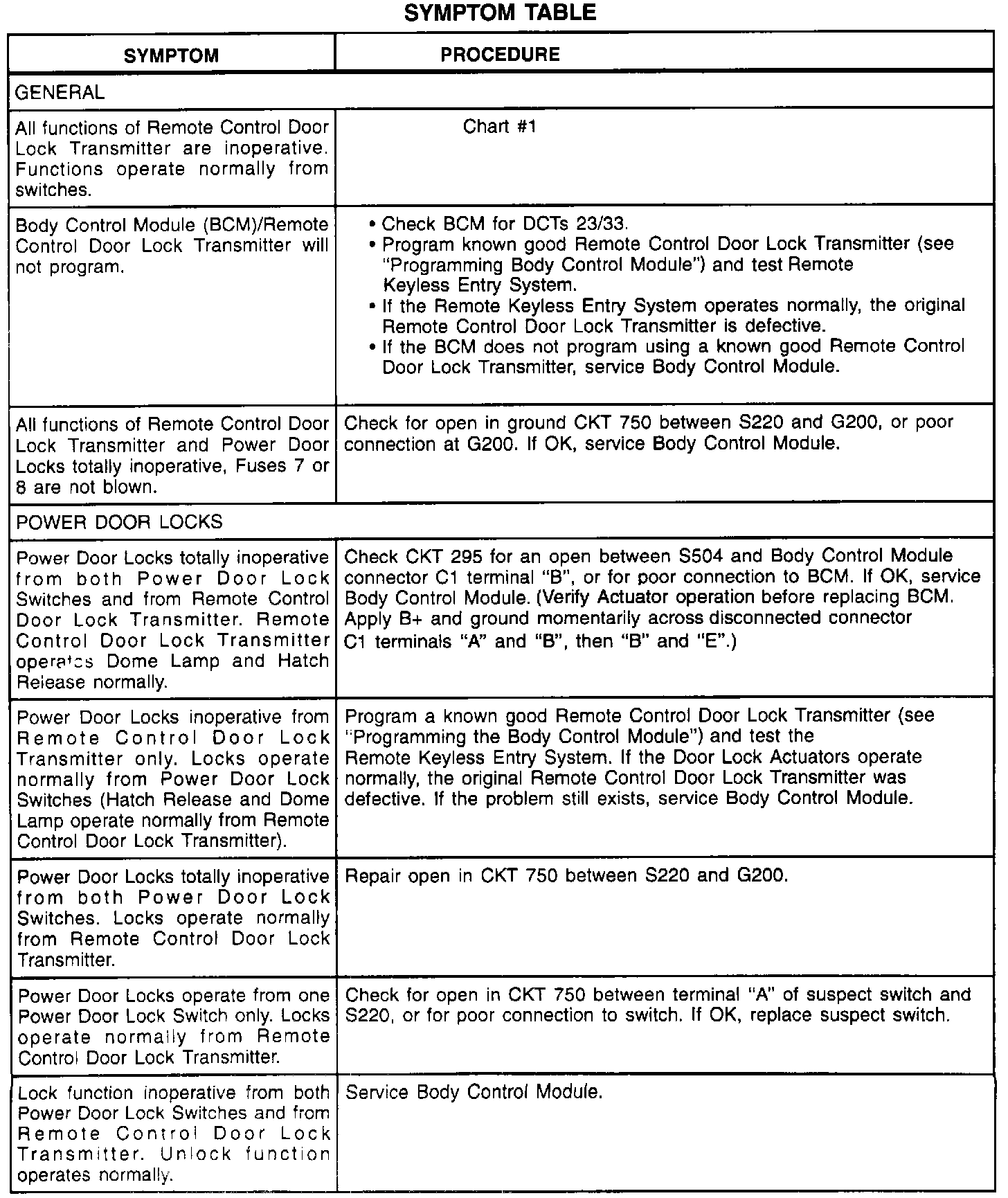 Symptom Table (Part 2 Of 3):
