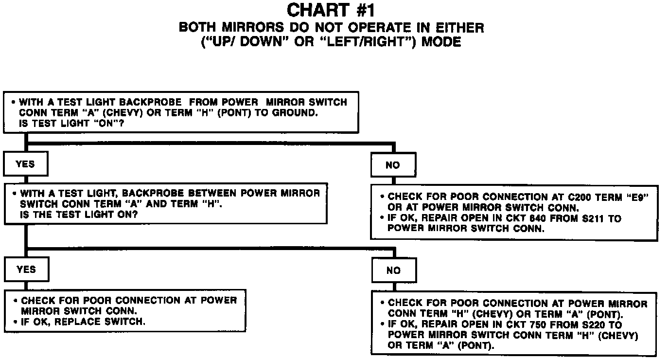 Chart #1 Both Mirrors Do Not Operate In Either Mode: