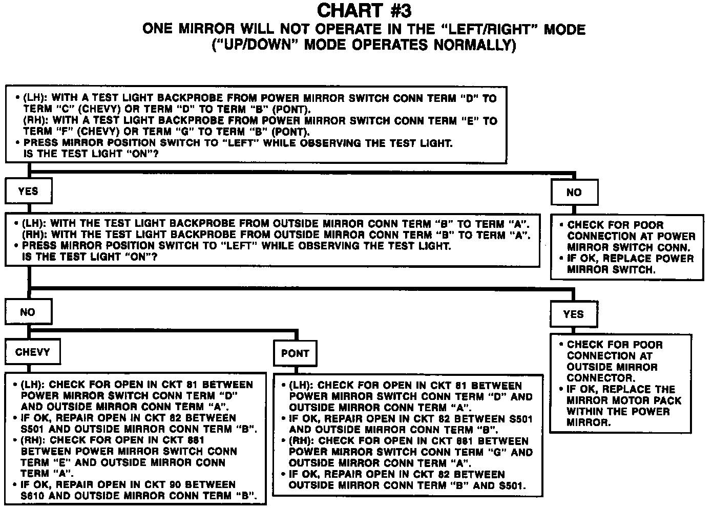 Chart #3 One Mirror Will Not Operate In The Left/Right Mode: