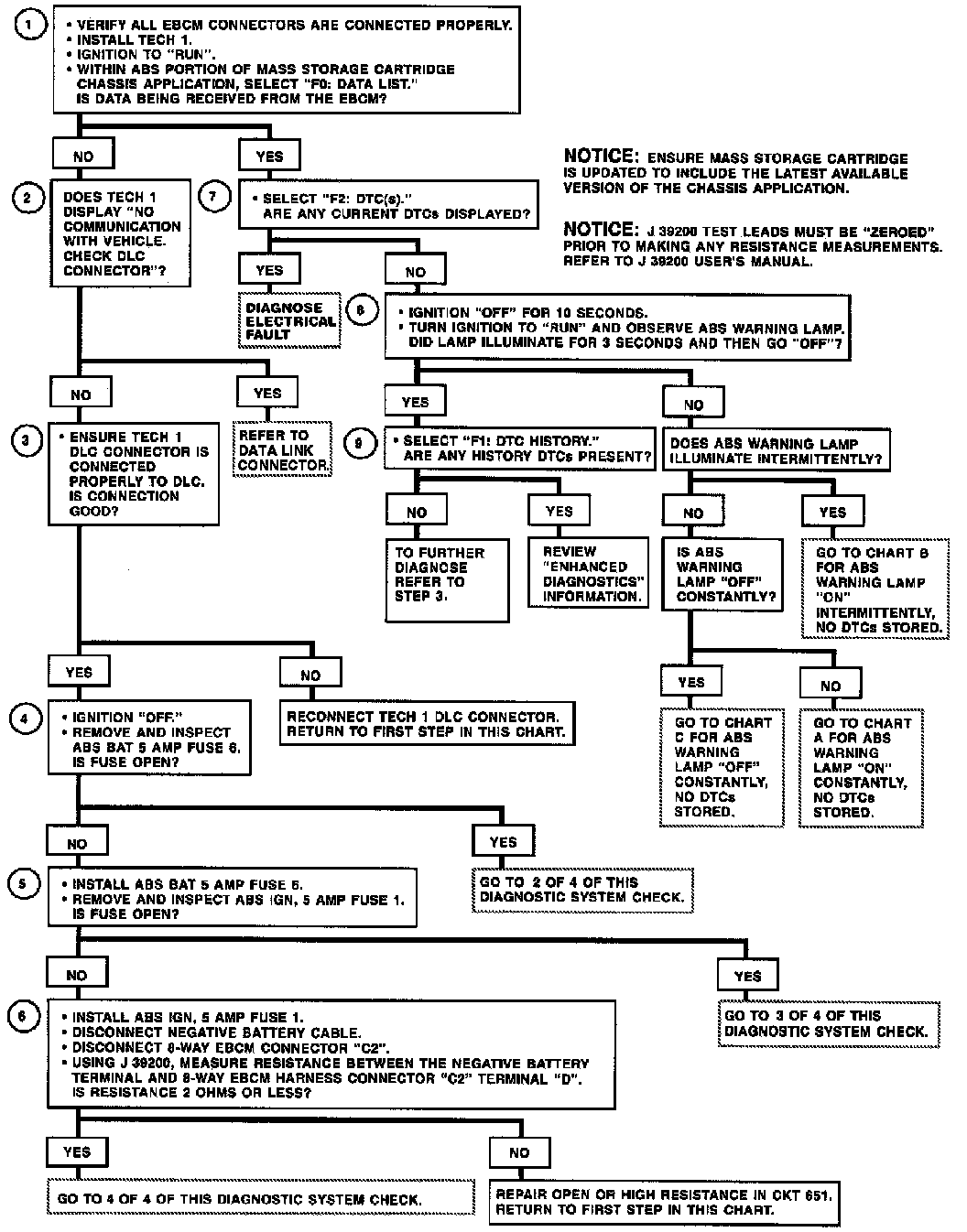 Excessive resistance in the ground or power supply circuits will not allow communication with the EBCM. If communication with the EBCM is not possible, ensure the ABS VI ground connection is good and that there is no excessive resistance in any of the power supply circuits.