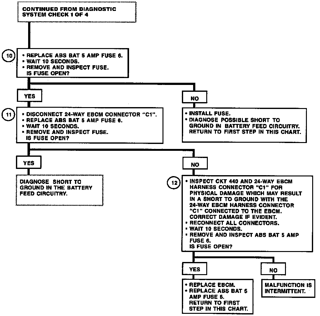 4. Checks for open ABS BAT 5 amp Fuse 6.