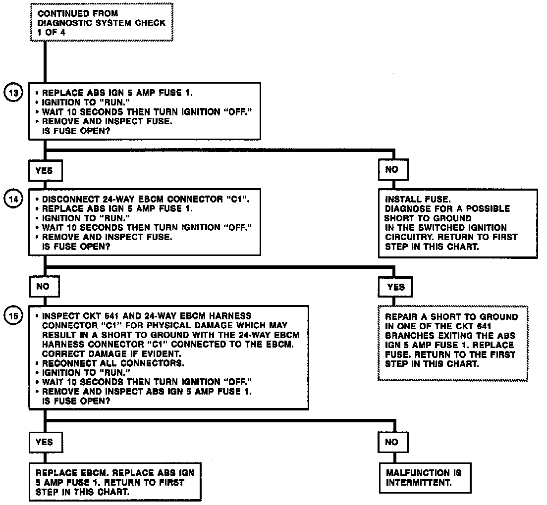 5. Checks for open ABS IGN 5 amp Fuse 1.