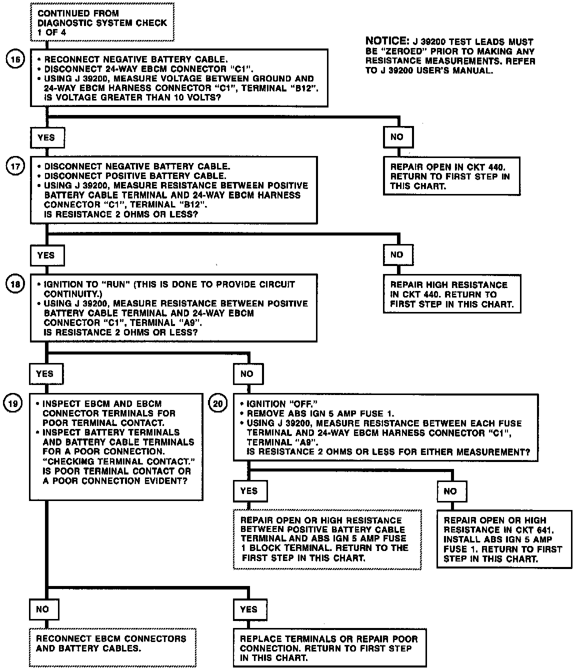 16. Checks for proper battery voltage at the EBCM.