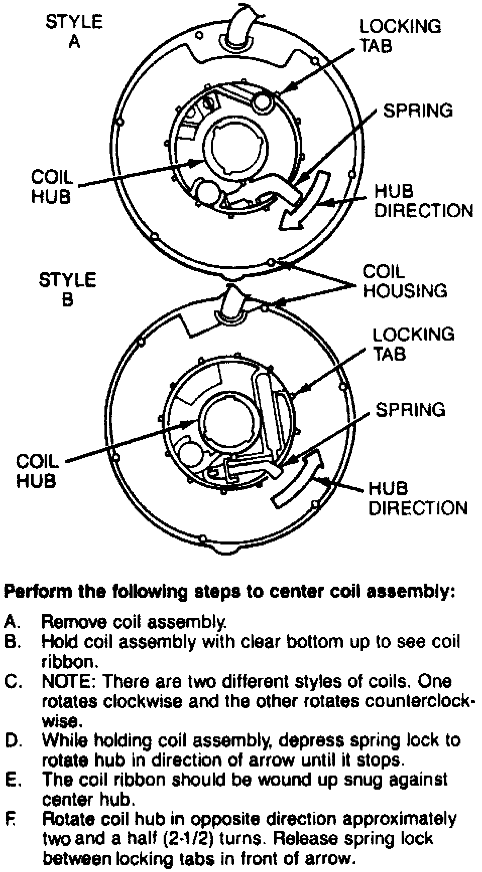 2. Place ignition switch in Lock position to retain coil assembly in the centered position.
