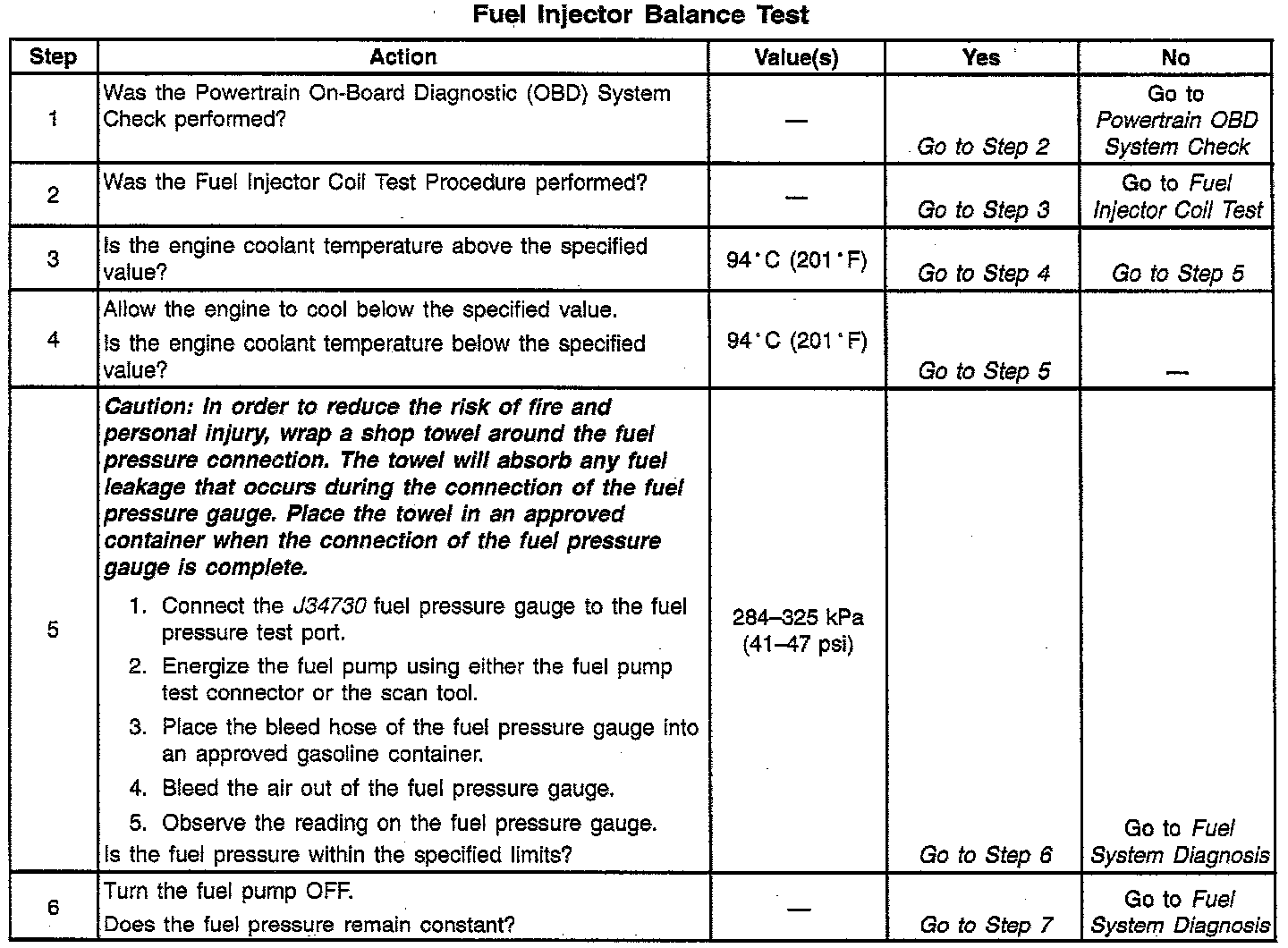6. The fuel pressure should reach a steady value. If the fuel pressure does not reach a steady value, go to Fuel System Diagnosis.