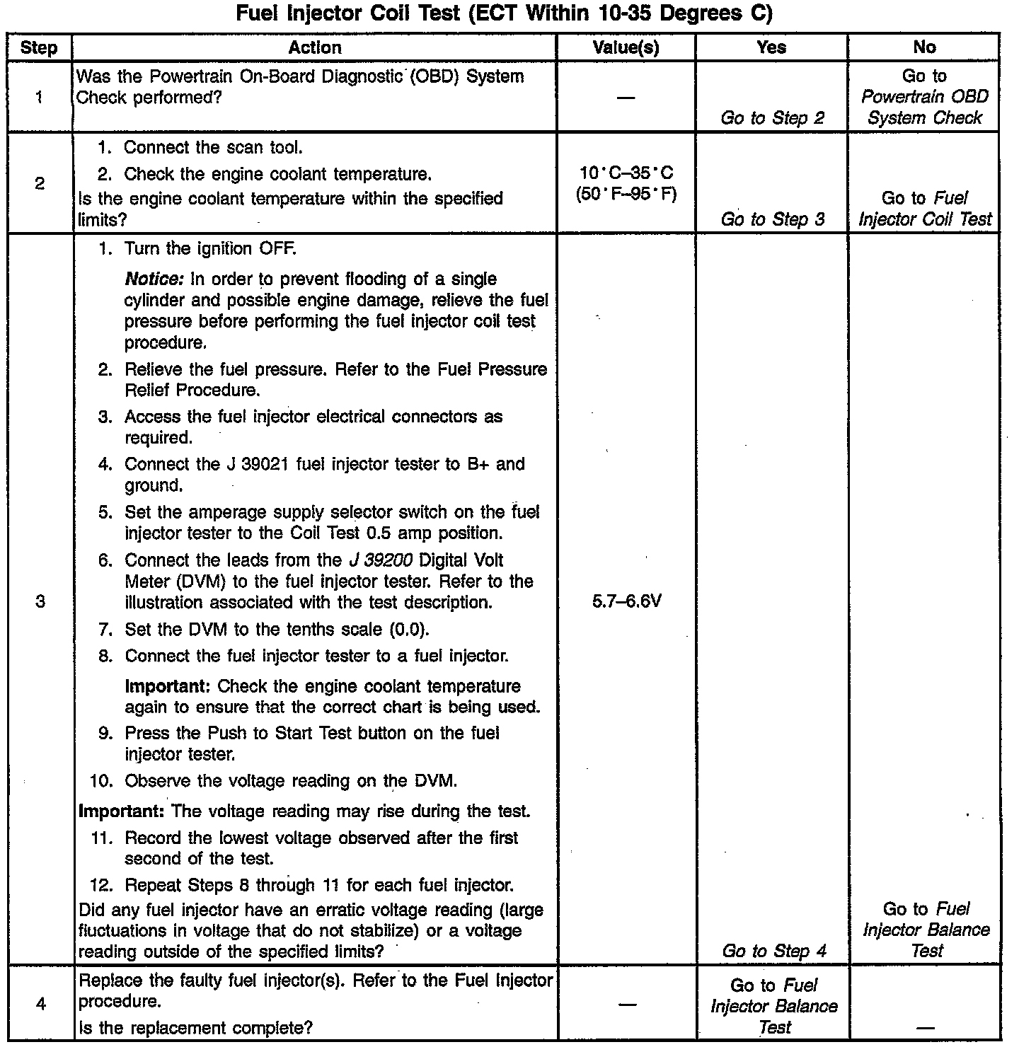 Fuel Injector Coil Test - ECT Temp Between 10-35 Deg C