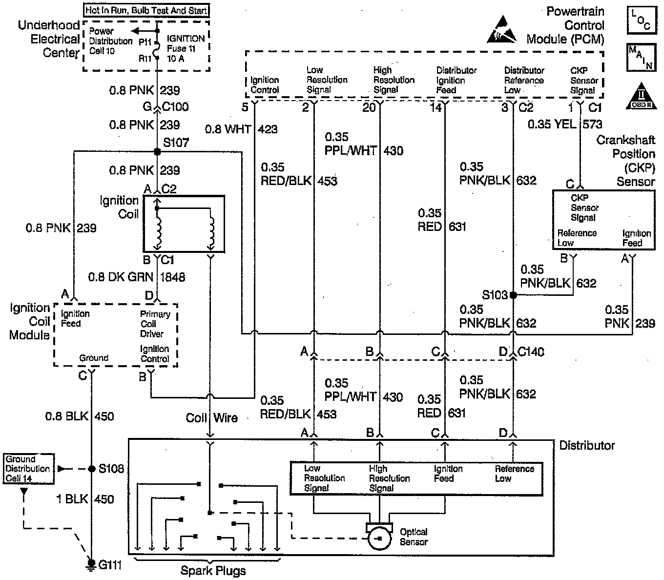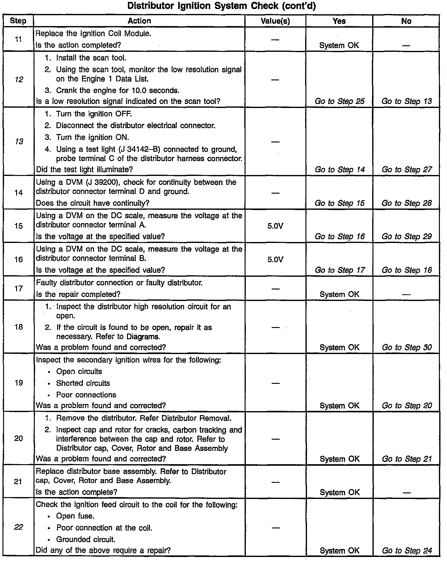 13. If the PCM does not detect low resolution signal pulses, the distributor or distributor to PCM circuitry is most likely the problem. The remaining tests will determine if the proper signals are being sent and received from both the distributor and PCM.