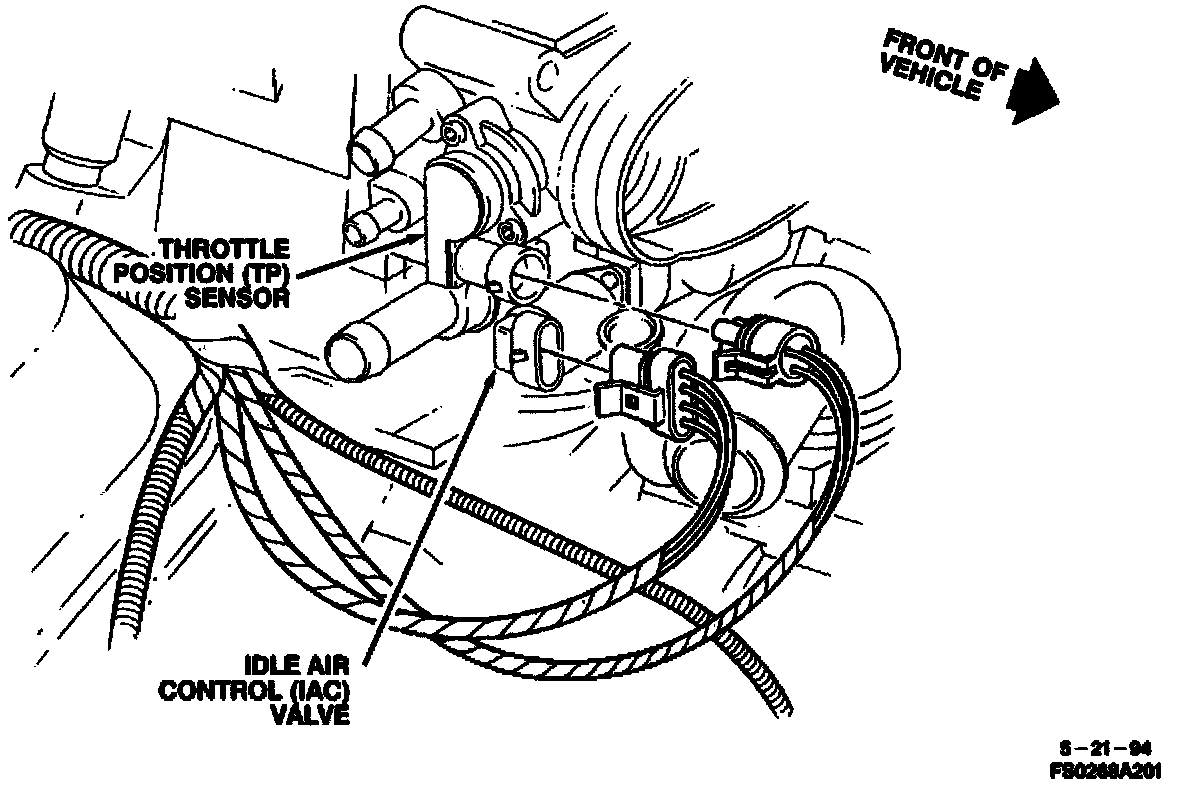 The Throttle Position (TP) sensor is a potentiometer. The TP sensor is mounted to the right side of the throttle body. The TP sensor provides a voltage signal that changes relative to throttle blade angle. This signal voltage is one of the most important inputs used by the PCM. The TP sensor has a 5.0 volt reference, a ground and a signal circuit.