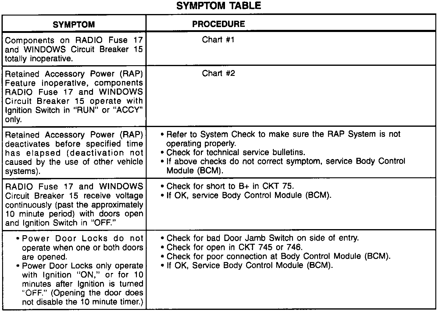 Symptom Table: