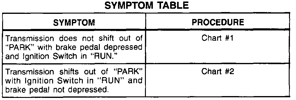 A Symptom Table - Brake Transaxle Shift Interlock