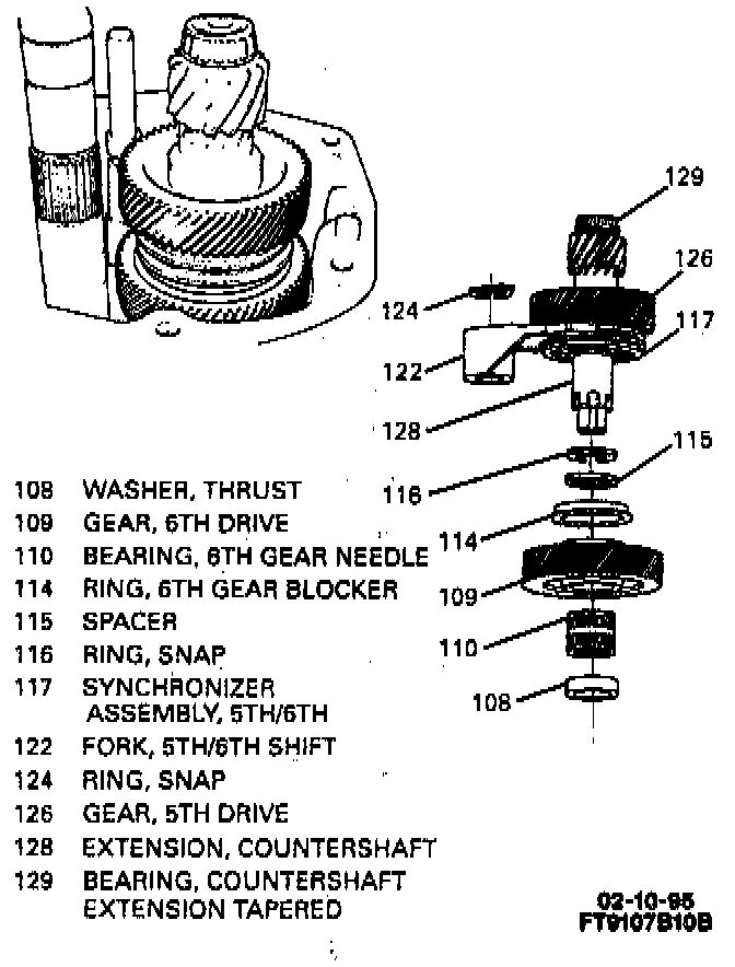 Countershaft extension assembly with 5th/6th shift fork (122).