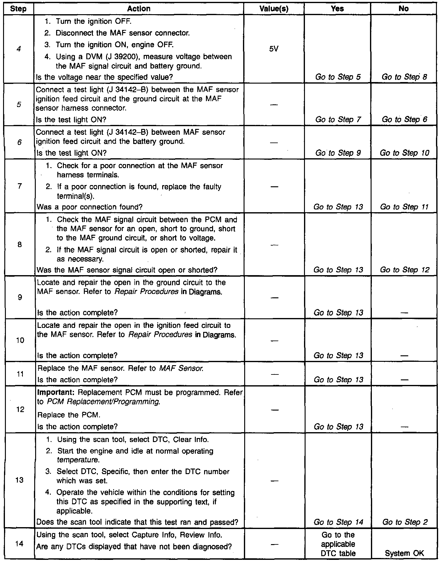 4. This checks whether the MAF signal circuit is open or shorted to ground. If 5.0 volts is present indicates the circuit is OK.