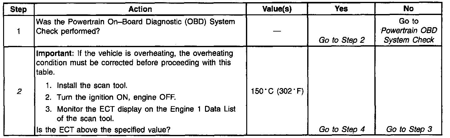 ^ The PCM indicates Engine Coolant Temperature greater than i51°C (304°F).