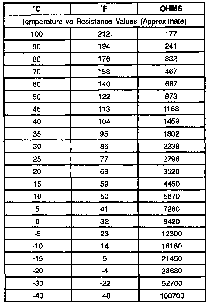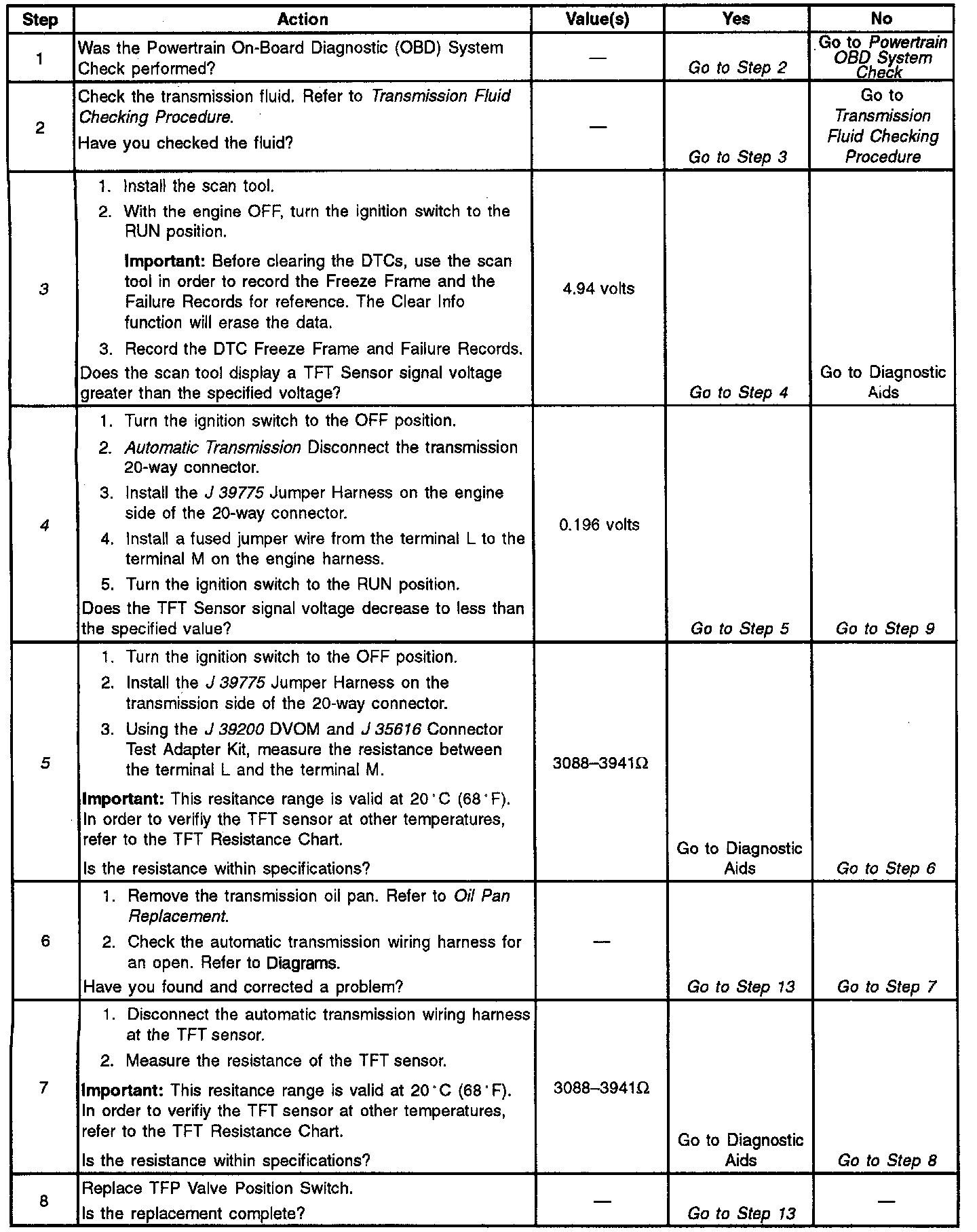 ^ Use the temperature versus resistance scale in order to test the TFT sensor at various temperatures. Test the TFT sensor at the various temperatures in order to eliminate the possibility of a skewed (mis-scaled) sensor. A skewed sensor can result in firm shifts or TCC complaints.