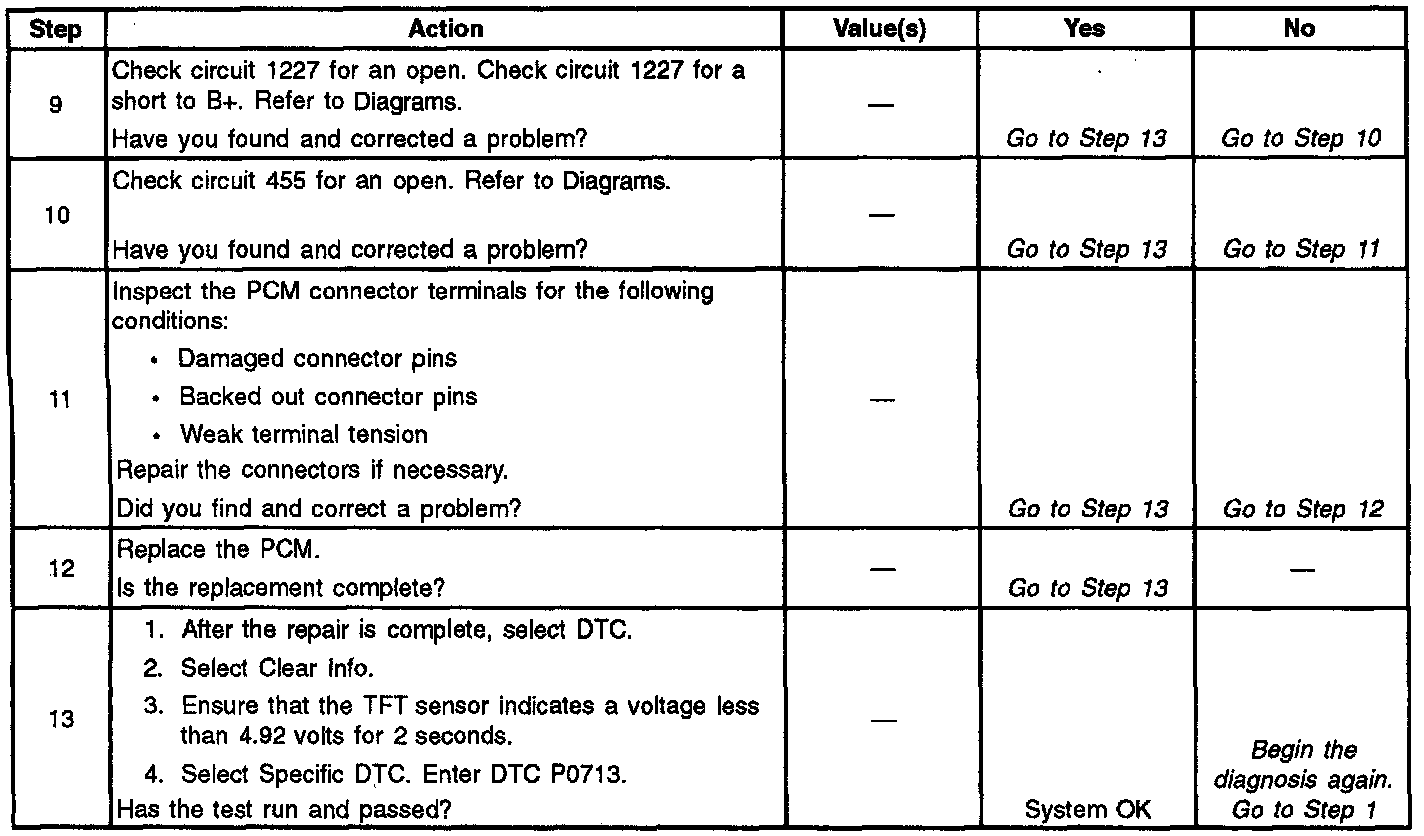 4. This Step simulates a TFT sensor DTC P0712. If the PCM receives the low signal voltage (indicating high temperature), and the scan tool displays 146°C (296°F) or greater, then the PCM and wiring are functioning normally.