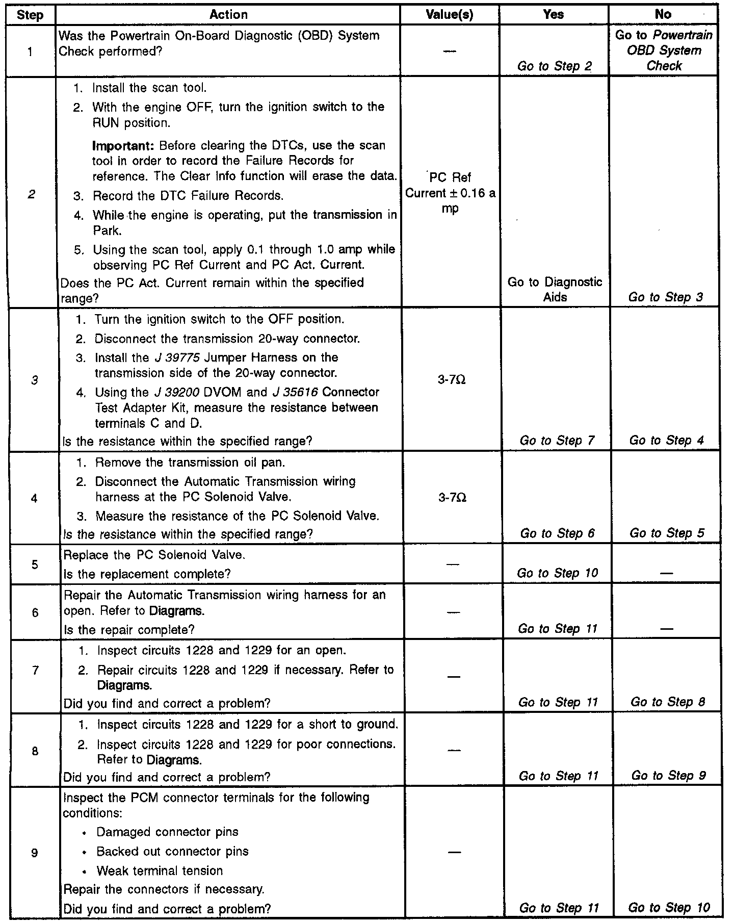 3. This Step verifies that the PC Sol. Valve has the correct resistance. This Step verifies that the Automatic Transmission wiring harness has the correct resistance.