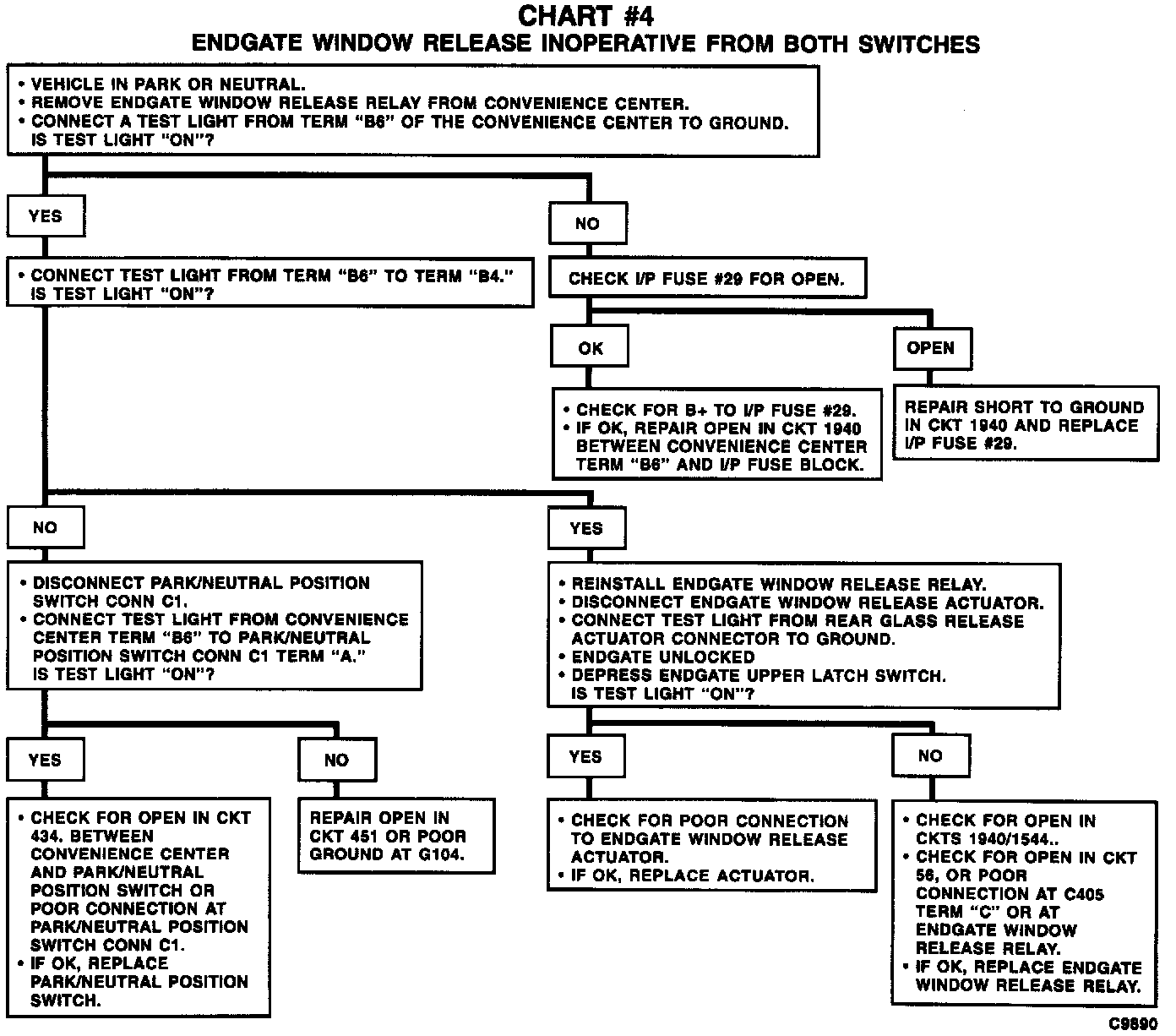 Chart #4 Endgate Window Release INOP From Both SW: