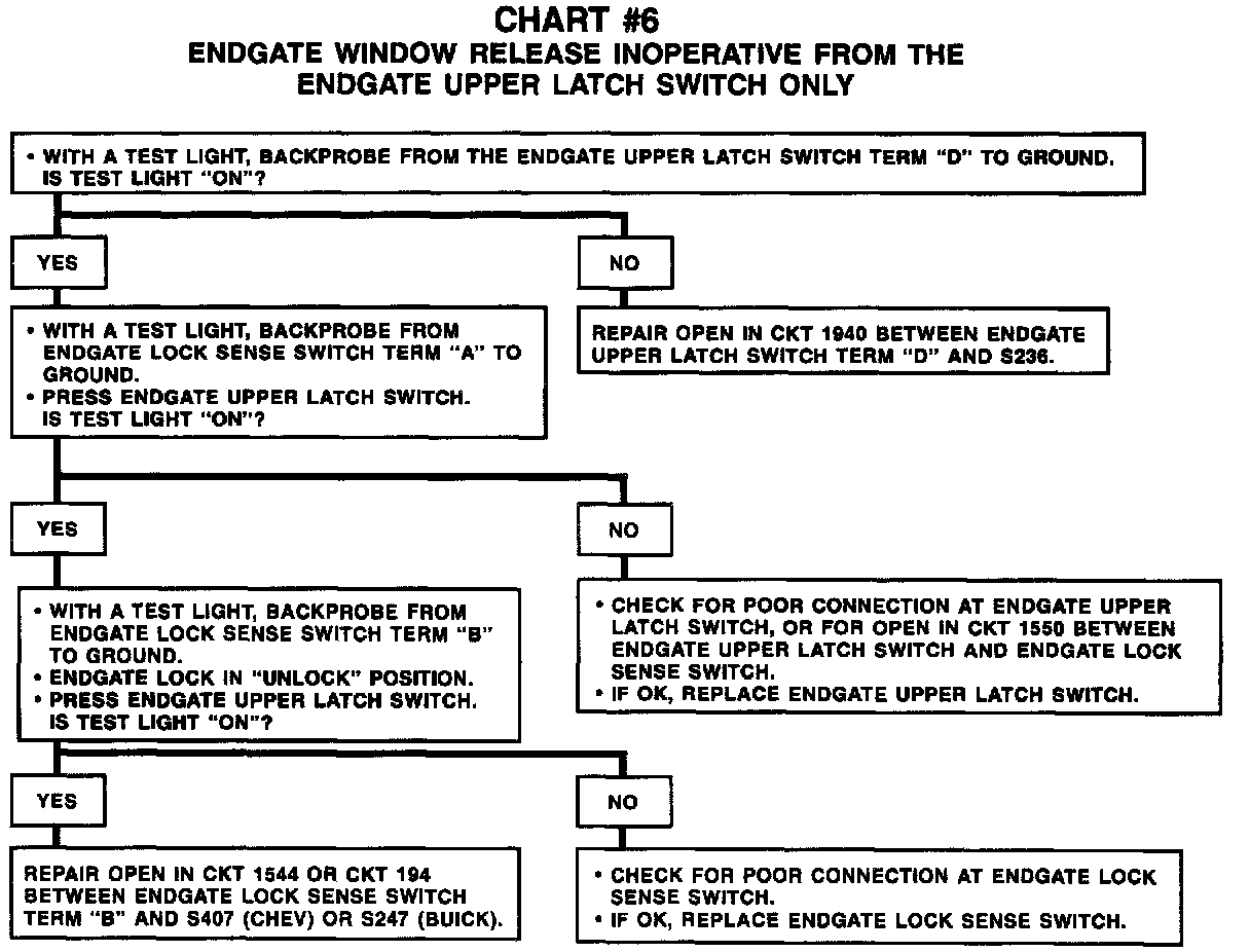 Chart #6 Endgate Window Release INOP From Endgate Upper Latch SW Only: