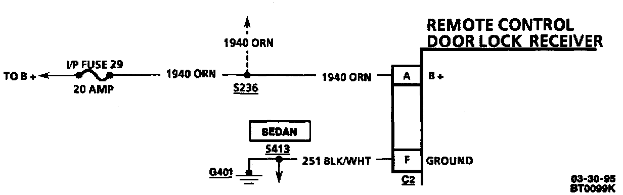 Battery voltage is applied to the Remote Control Door Lock Receiver (RCDLR) at all times through Instrument Panel (I/P) fuse 29. The RCDLR is grounded at all times.