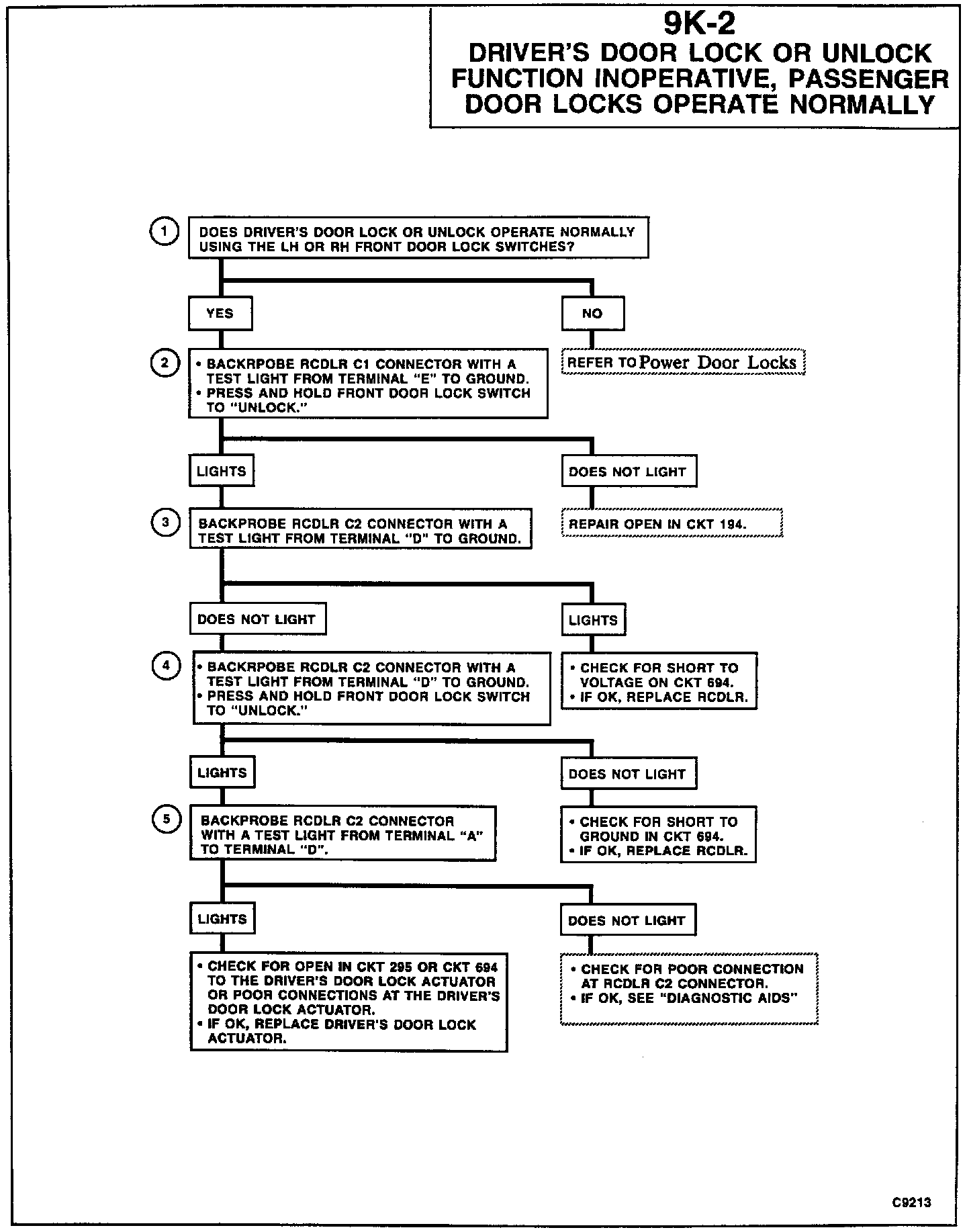 9K-2 Driver's Door Lock/Unlock Inoperative, Passenger Operative